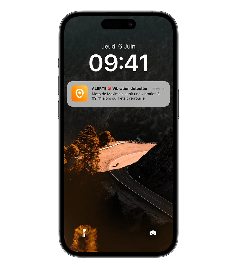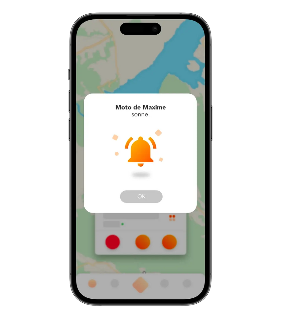 visuel moto avec notif "Pierre est bien arrivé"