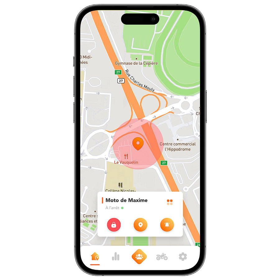 GeoRide vous alerte immédiatement en cas de mouvement sur votre moto.